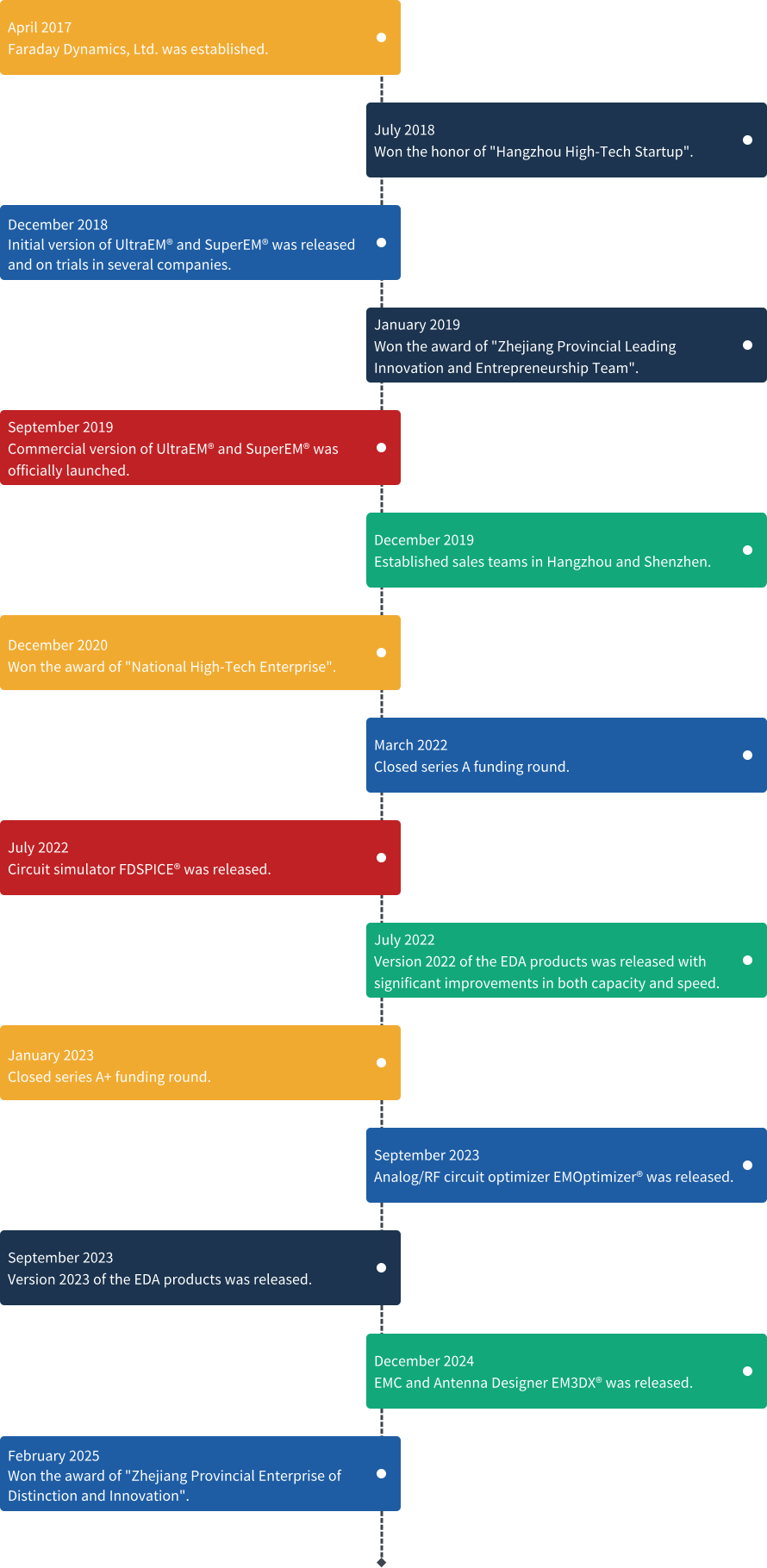 杭州法动科技有限公司 成立于2017年,是杭州泛利科技有限公司的全资子公司。作为拥有硅谷及斯坦福创新基因的国际一流团队,我们专业提供射频微波电子设计自动化(EDA)软件,凭借自主研发的大容量、快速三维全波电磁仿真引擎和基于人工智能技术的高效系统级仿真引擎,能够在射频微波芯片、封装、高速PCB等领域为用户提供快速准确的电磁仿真、建模及优化设计方案。同时,我们可以为包括移动通信、物联网、5G、雷达、卫星通信系统和高速数字设计在内的产品提供高水平设计开发服务。