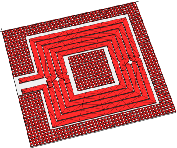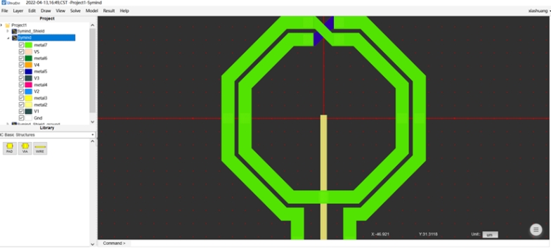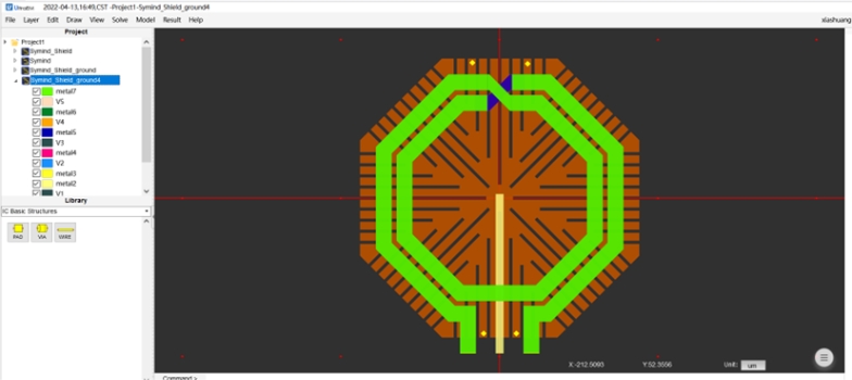 此仿真实例用UltraEM®来研究接地屏蔽层(PGS)以及NTN层的改变对器件Q值造成的影响。