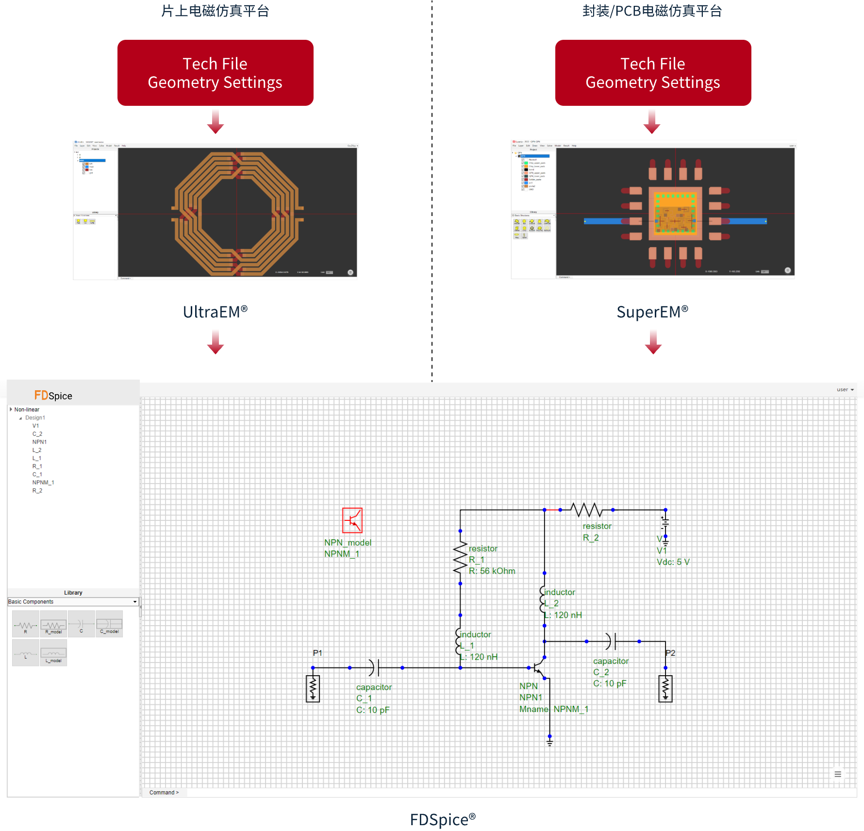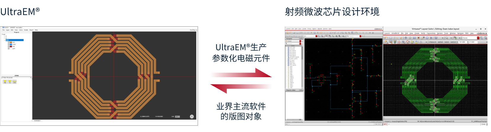 易于使用的芯片级电磁设计工具(UltraEM XATM),与国产IC版图编辑器无缝集成。