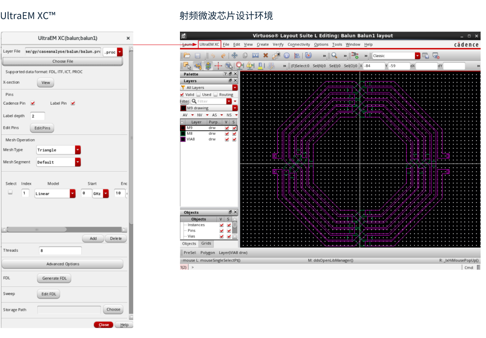 易于使用的芯片级电磁设计工具(UltraEM XCTM),与国际IC版图编辑器无缝集成。