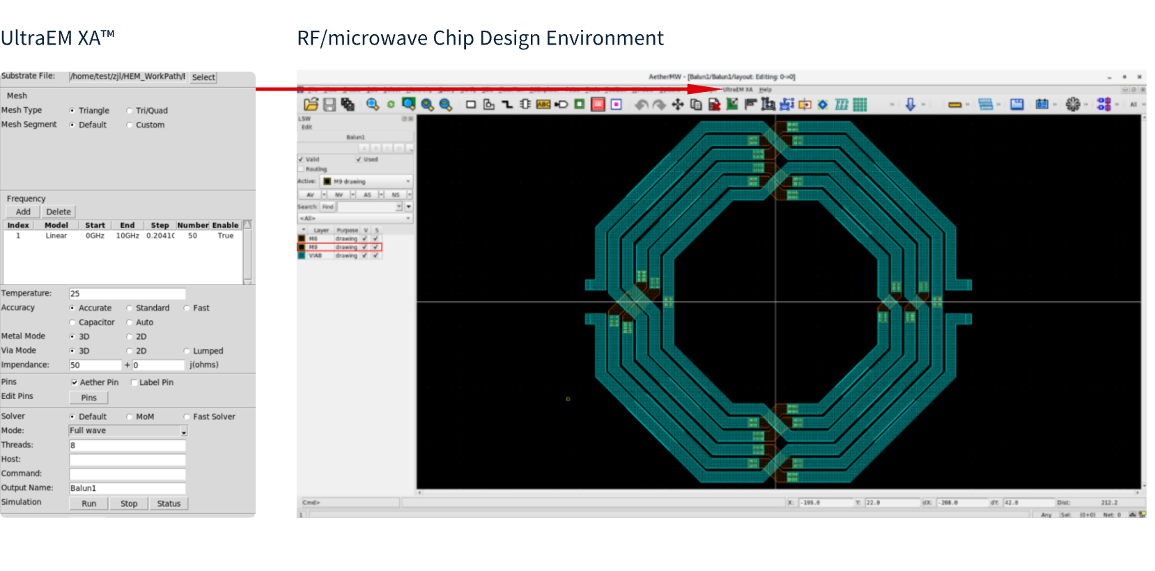 8.Directly output design to 3D full wave electromagnetic simulation tool (UltraEM®/SuperEM®) for electromagnetic simulation verification.